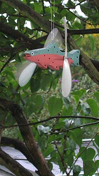 The whirly gig is shaped like a fish. Rich made them in many shapes, but gave me this particular one as a gift. I have always enjoyed its optimistic spinning in my garden all year round, and it does contain some fond memories of a short trip and a really good friendship.