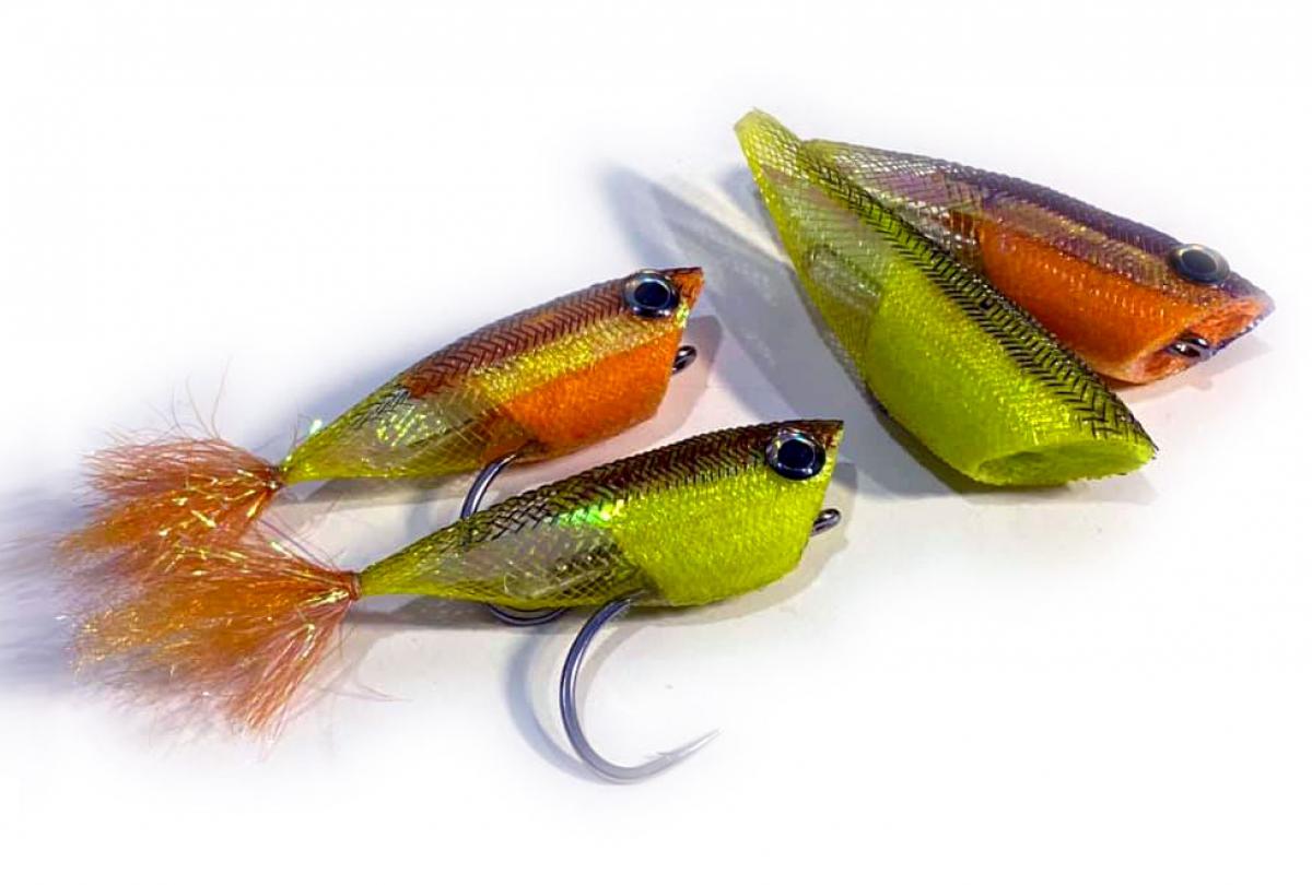 Like many of Dron’s flies it incorporates foam. It utilizes the foam for flotation, some braided tubing to form a body and eyes and flash and yarn fibers to make a tail. This makes it a perfect little colorful fish frantically escaping in the surface, making bubbles and noise thanks to its cupped front. It will also go zigging and zagging each time it’s stripped in, and as an added attractor Dron as mounted a rattler in the rear of the fly, yielding an even noisier fly. You can see it in action in the video below. It's a great fly for bass and other fish that react to some surface commotion.
