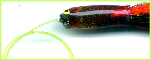 The leader is drawn through the tube and attached to the hook which is then drawn into the soft silicone tubing.